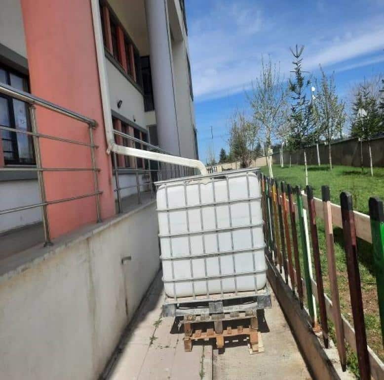 Yağmur Hasadı sistemimiz okulumuz 4/B sınıf öğretmeni Sinan SU tarafından yapılmıştır. Çatıdan gelen yağmur sularının depomuza boşaltılması sağlanmıştır. Depodaki suyumuzla seramızı ve bahçemizi suluyoruz.